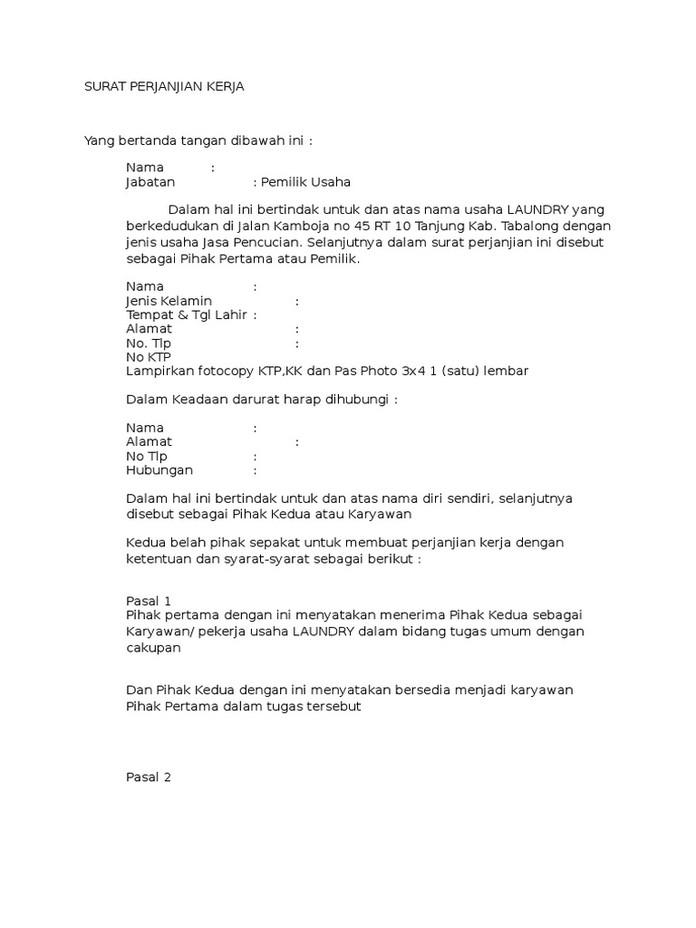 Surat Perjanjian Kerja Laundry Pdf